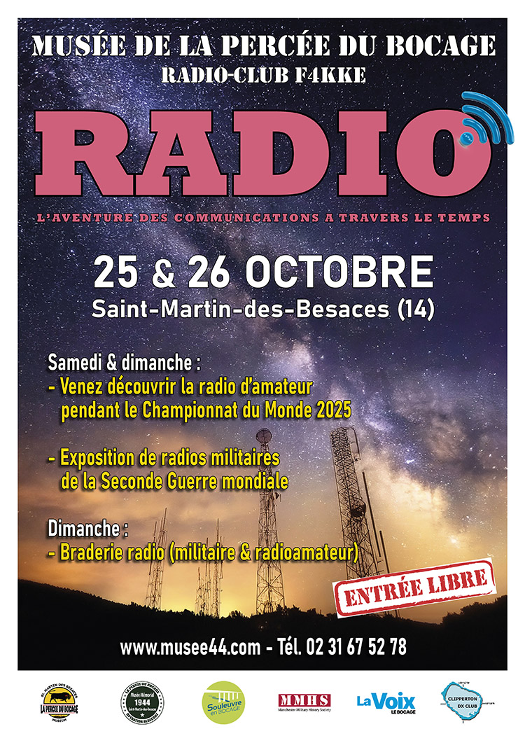 Le Musée de La Percée du Bocage et son radio-club ouvre ses portes gratuitement les 25 et 26 octobre 2025 à l'occasion du Championnat du Monde des radioamateurs auquel la station radio du musée va participer.